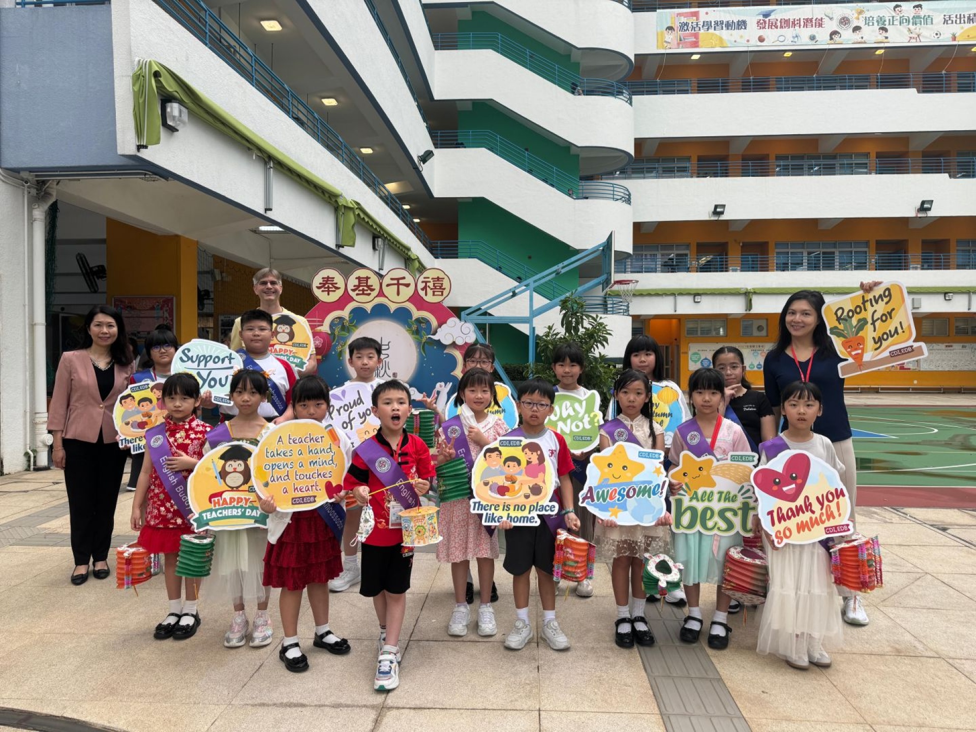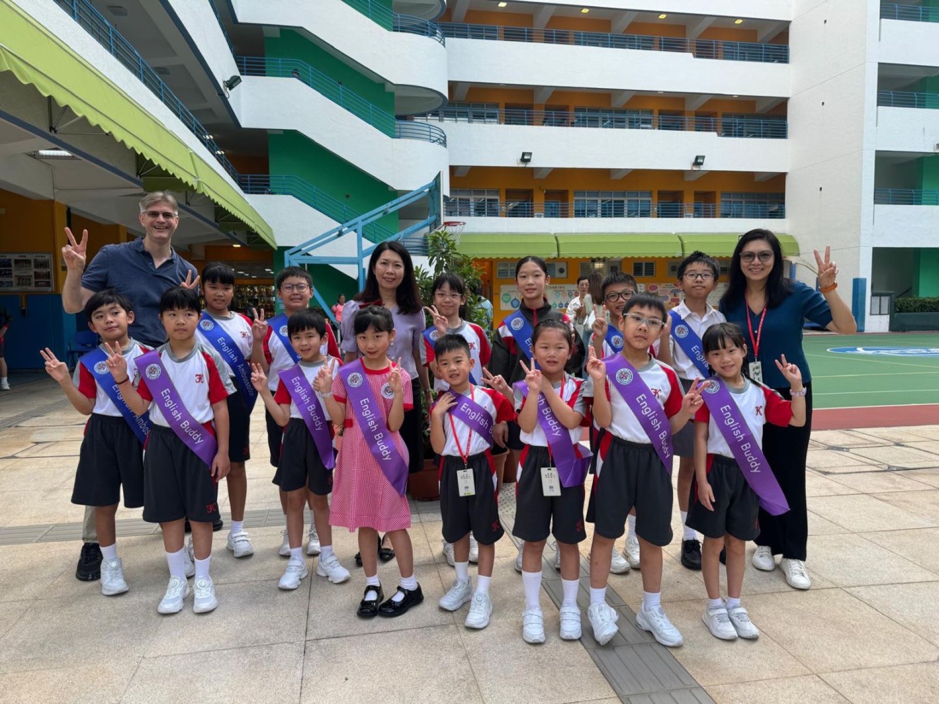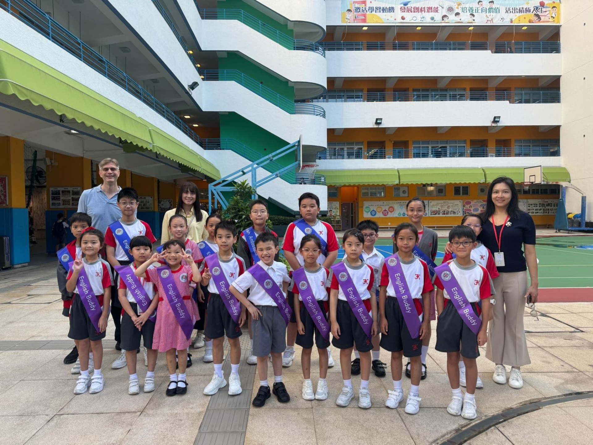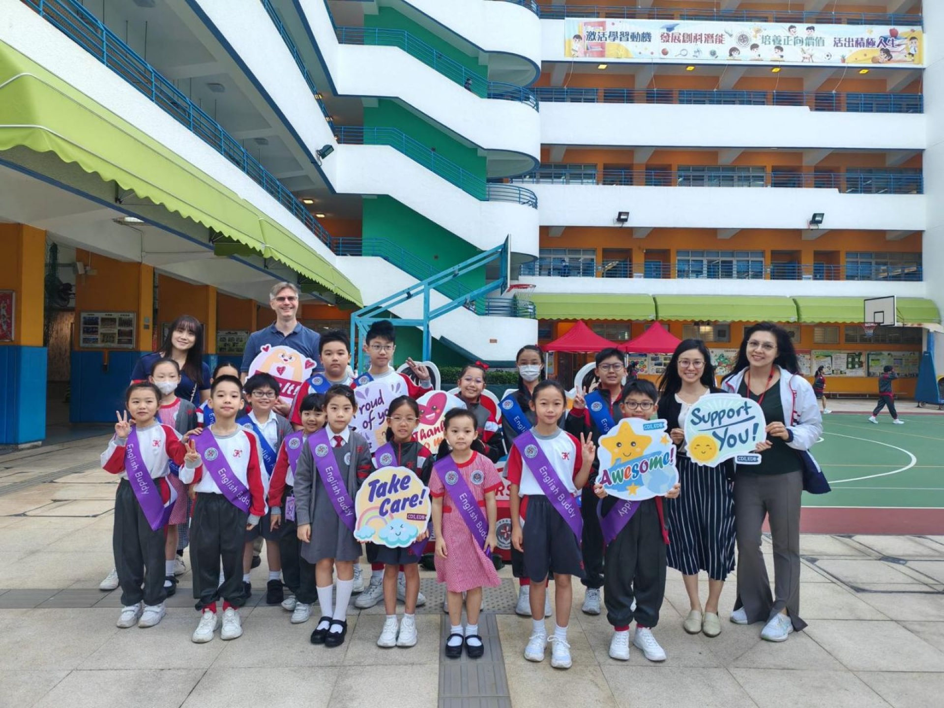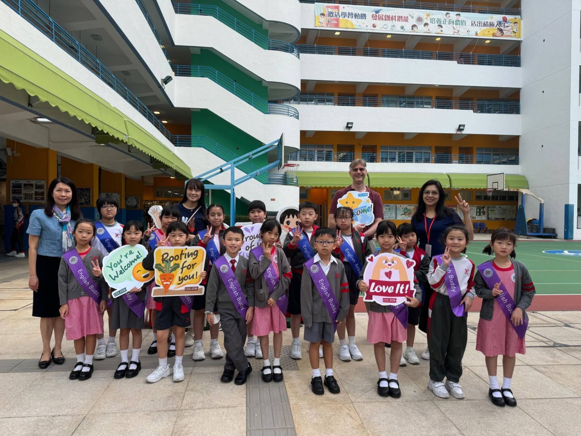English Buddies and English Ambassadors welcome schoolmates every Monday with English songs and greetings at the school gate. The greetings make every FKMPS kid feel warm and excited. English Buddies and English Ambassadors pick up new English words from the songs. They also learn to use English greetings in daily life.