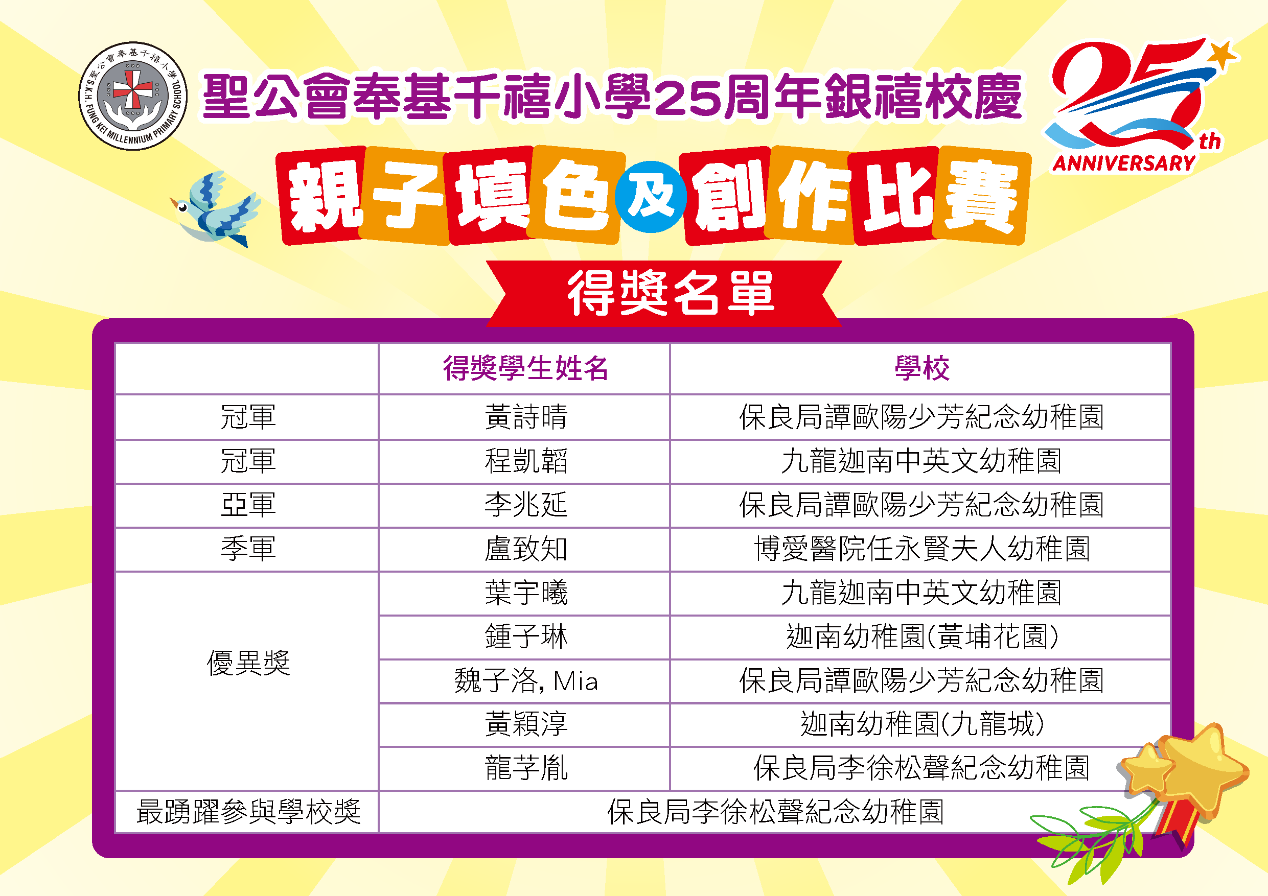 25周年銀禧校慶親子填色及創作比賽結果及獲獎作品(幼稚園)