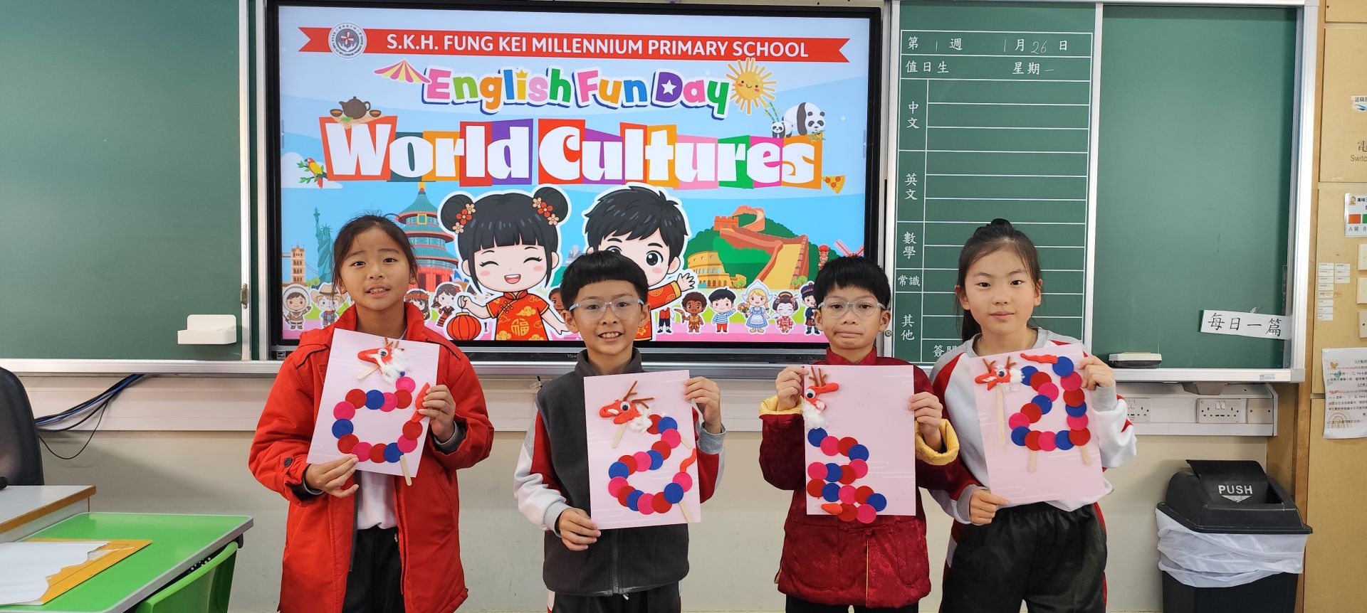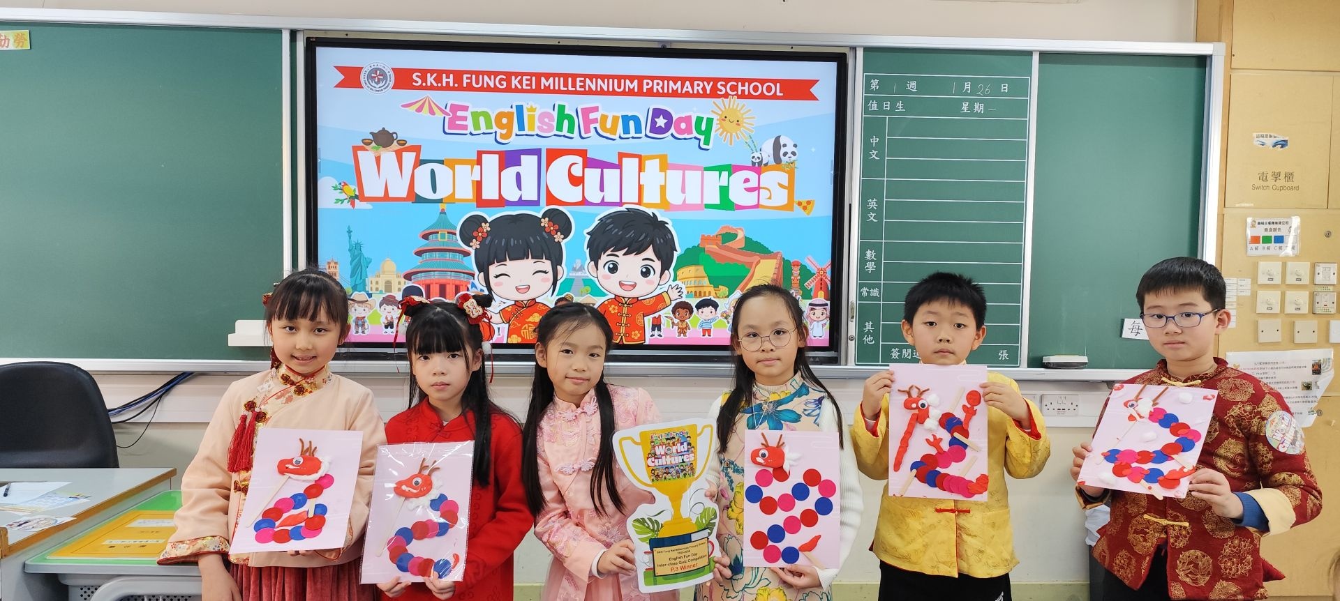 The 2nd school term began with English Fun Day, themed World Cultures. Students enjoyed fun booth games about geography, international food, famous landmarks, costumes, and more. They also created handicrafts and learned about different cultures by making dumplings, dragon crafts, and tangerine pots. Students also joined inter-class quiz competitions and dressed in traditional costumes from various cultures. We thank the parent volunteers who supported this event; everyone had a great time!